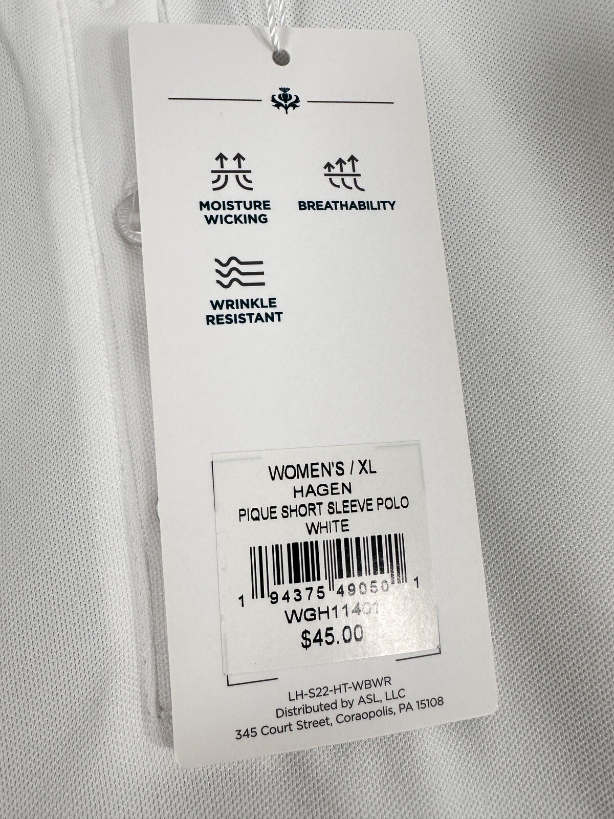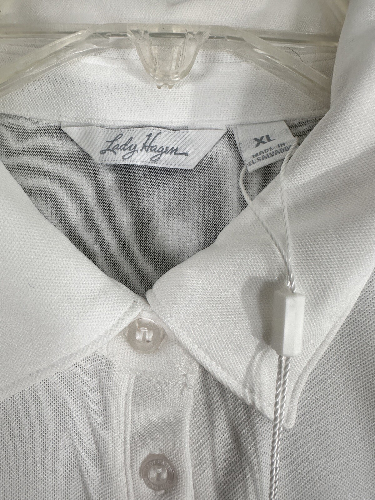New Lady Hagen Golf Shirt XL Womens White Pique Polo Short Sleeve NWT